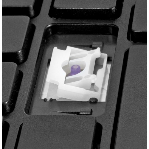 또한 동시입력 개수 제한이 없어 원하는 만큼 동시에 입력이 가능하기 때문에 게이머들의 선호도가 높습니다. 다만 키캡 아래에 스위치가 바로 노출되어 있기 때문에 액체와 같이 스며드는 이물질에는 대단히 취약합니다.