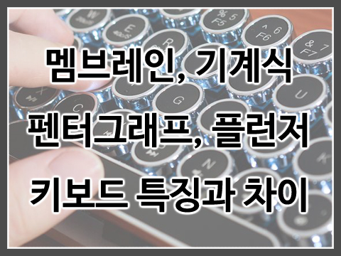 주된 용도가 입력이라는 것은 같지만 키보드의 종류에는 여러 가지가 있습니다. 구동 방식으로 구분해보면 그 중에서도 기계식, 멤브레인, 팬터그래프, 플런저가 가장 많이 쓰이고 있습니다.