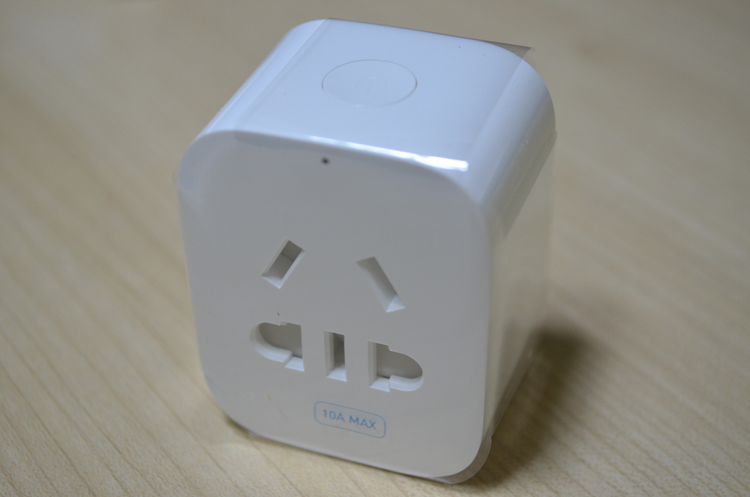 사진에 보이는 이 부분이 플러그를 꽂는 부분이고 범용 타입이라 일단 Mi Plug Mini에 꽂는 것은 아무것이나 다 됩니다. 약간 뻑뻑해서 그렇지 살살 해서 잘 우겨넣으면 다 들어갑니다. 위에 있는 동그란것이 켜고 끄는 버튼입니다. 저 버튼을 이용하면 스마트폰 어플리케이션을 켜지 않아도 켜고 끄는 것이 가능합니다. 그리고 위에 있는 작은 점같이 생긴 부분은 작동 LED가 점등되는 부분인데 켜졌을때는 파란색으로 LED가 들어옵니다.