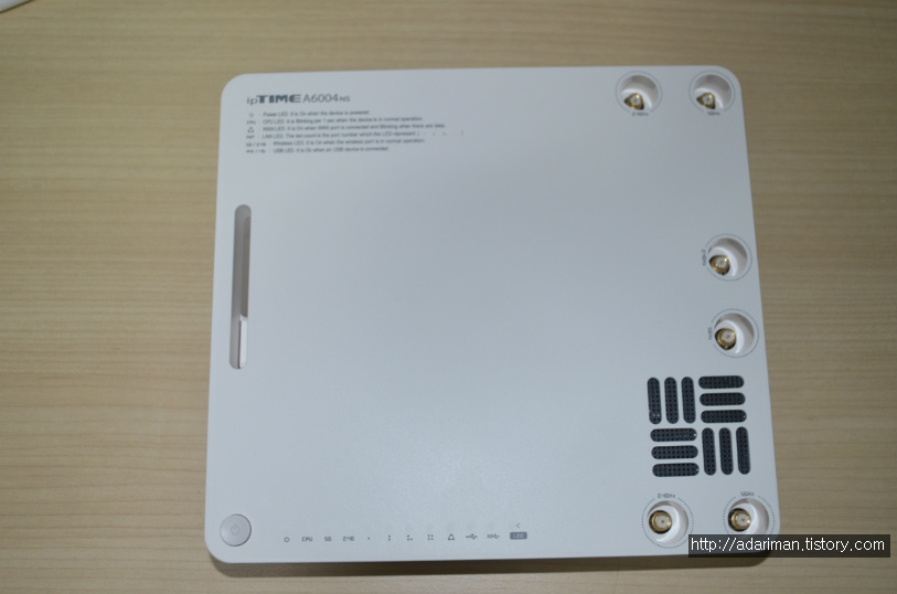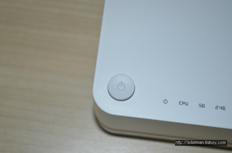 전면 좌측 하단에 전원을 켜고 끌 수 있는 버튼이 있습니다. 아이피타임 공유기들 중에서는 고급형 제품들에만 달려있습니다.