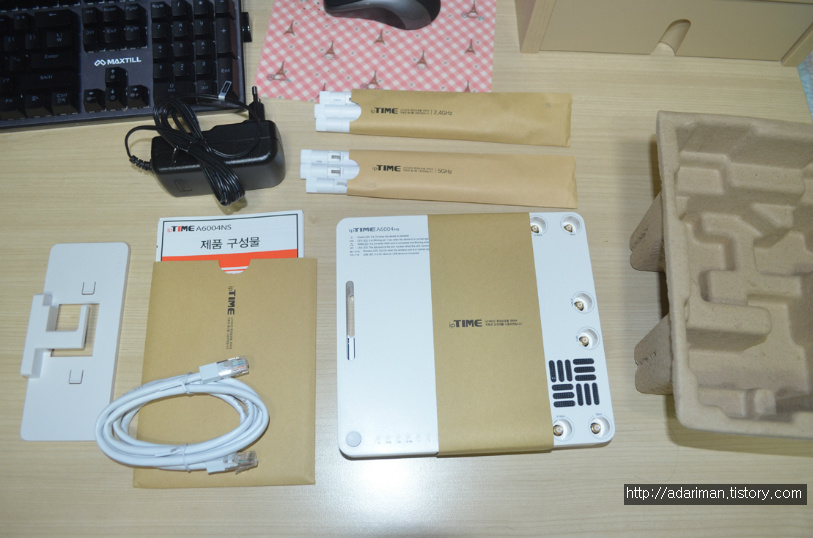 구성품은 설명서, 어댑터, 거치대, 랜선, 본체, 안테나 6개로 고급형 제품이라 그런지 구성품이 많은 편입니다.