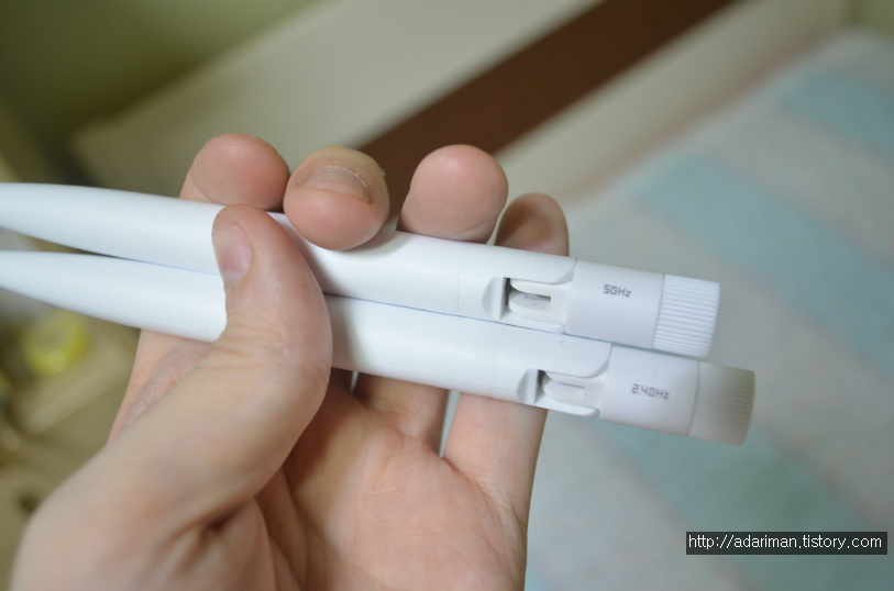 안테나는 5Ghz 안테나와 2.4Ghz 안테나가 구분되어 있으며 각각 3개씩 총 6개가 들어 있습니다. 안테나가 많다고 다 좋은건 아니지만 많아서 나쁠 것은 없습니다.