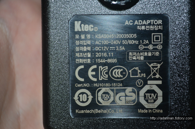 12V/3.5A의 전력을 공급할 수 있습니다. 중국산이지만 KC마크 인증을 받았습니다. 예전에는 아이피타임 제품들이 어댑터때문에 말이 많았는데 최근에는 어댑터도 신경을 쓴다고 합니다.