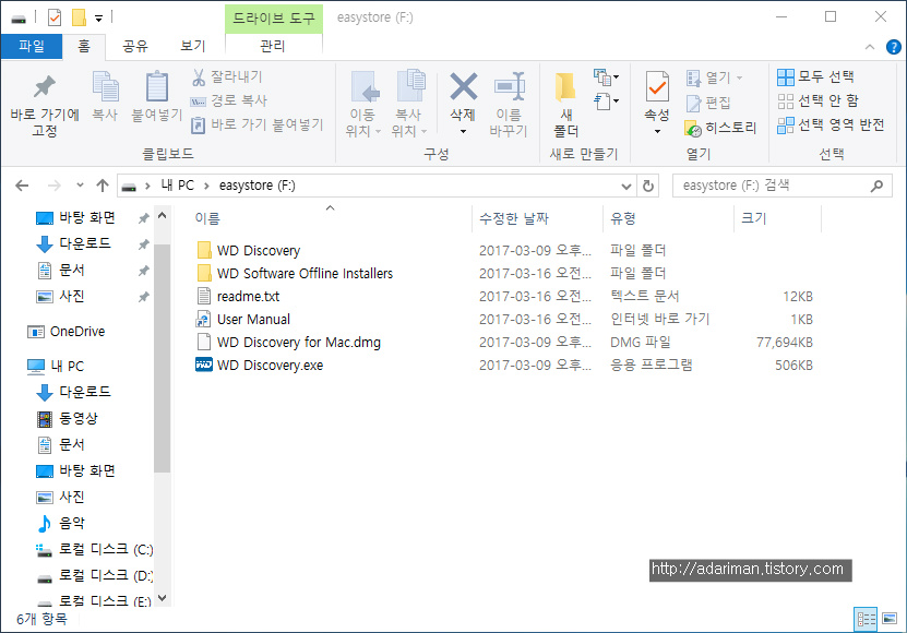 처음 열어보면 기본적으로 이런 유틸리티 설치 파일들이 들어있습니다. WD 디스커버리와 드라이브 유틸리티입니다. WD 디스커버리는 인터넷에 연결되어 제품과 관련된 각종 정보를 확인할 수 있는 유틸리티고 드라이브 유틸리티는 진단, 설정, 포맷 기능을 제공합니다.