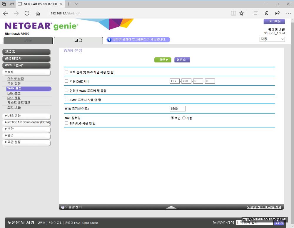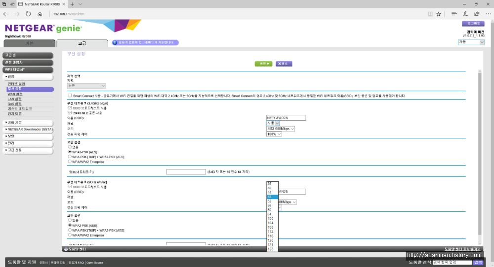 언어 설정을 한국어로 하는 것이 가능합니다. 다른 부분들은 다른 공유기들과도 비슷비슷하니 넘어가겠습니다.