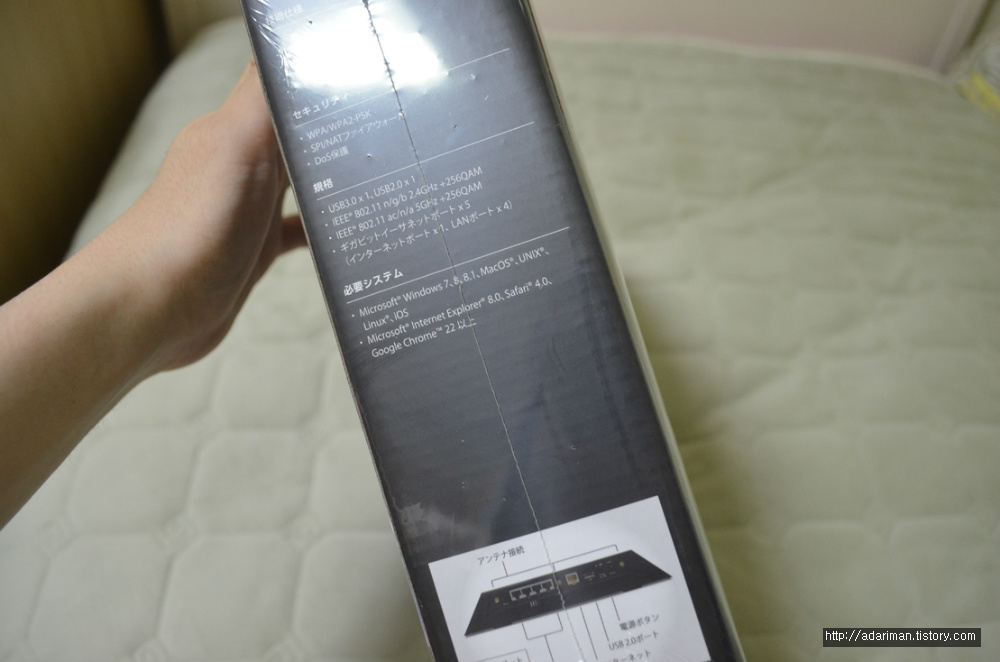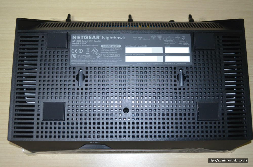 넷기어의 AC1900 공유기 R7000 입니다. 제가 구입한 것은 R7000 100JPS라는 제품명을 가진 일본판 R7000인데, 하드웨어 자체는 미국이나 한국판 R7000과 별 다를게 없고 펌웨어도 한국어 지원이 됩니다. 다만 딱 한가지가 다른데 그건 맨 아래 설정 살펴보기 부분에서 보실 수 있습니다.