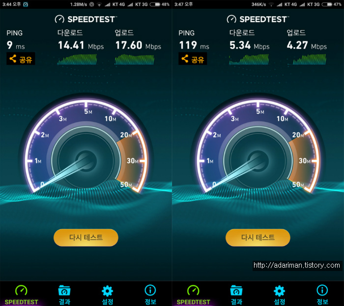 속도를 측정한 기기는 샤오미 맥스입니다.