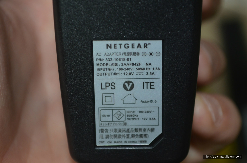 어댑터는 100 ~ 240V, 50/60Hz, 출력은 12V, 3.5A 입니다. 모양이 1자형이지만 전압은 프리볼트라 철물점 같은데 가서 돼지코만 장착하면 한국에서도 이상없이 사용할 수 있습니다.
