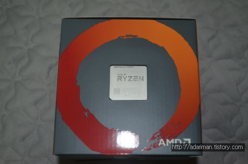 아래에 라이젠 3 시리즈임을 나타내는 3 숫자가 있고 위에는 은색 띠 모양으로 처리되어 있는 표면 위에 라데온 베가 그래픽스가 통합되어 있다고 써져 있습니다.