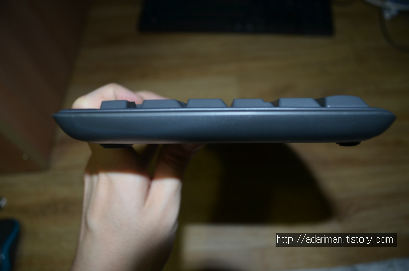 키캡 높이가 낮기 때문에 두께가 얇습니다. 키보드를 들고 이동해야 할 일이 자주 발생한다면 얇은 것이 좋습니다.