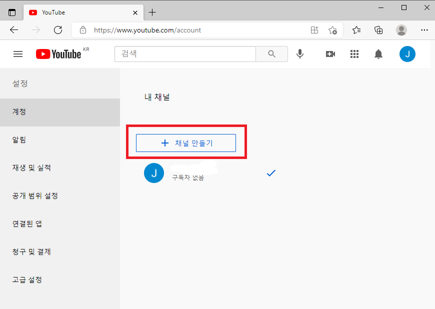 ③ 채널 만들기 버튼을 누릅니다.