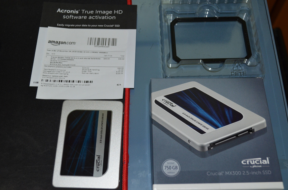 좌측 위부터 시계방향으로 Acronis True Image 시디키(그리고 그 위에 아마존 영수증),