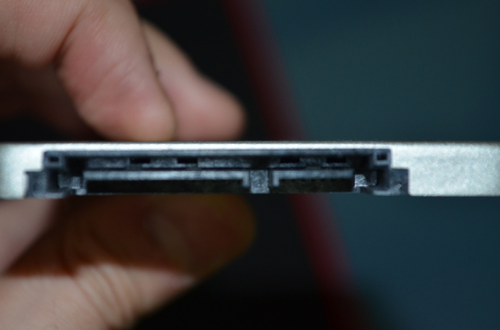 이렇게 SATA 인터페이스임을 확인하실 수 있습니다. 좌측은 전원 커넥터, 우측은 SATA 데이터 케이블 커넥터입니다.