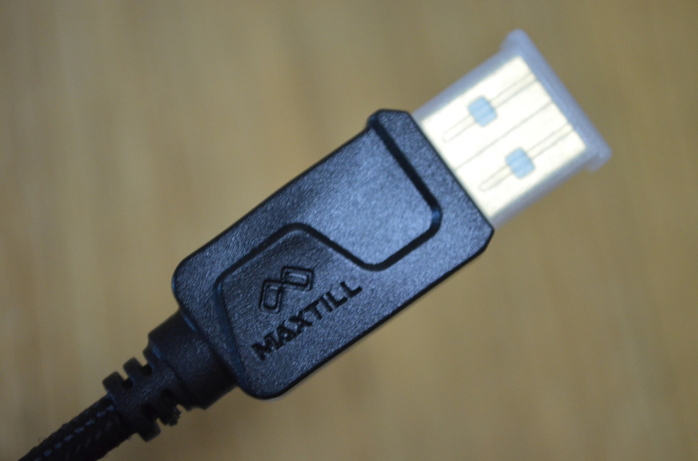 USB 커넥터에는 보호캡이 기본적으로 포함되어 있으며 금도금 처리가 되어 있습니다. 그리고 맥스틸의 로고가 음각으로 새겨져 있습니다.