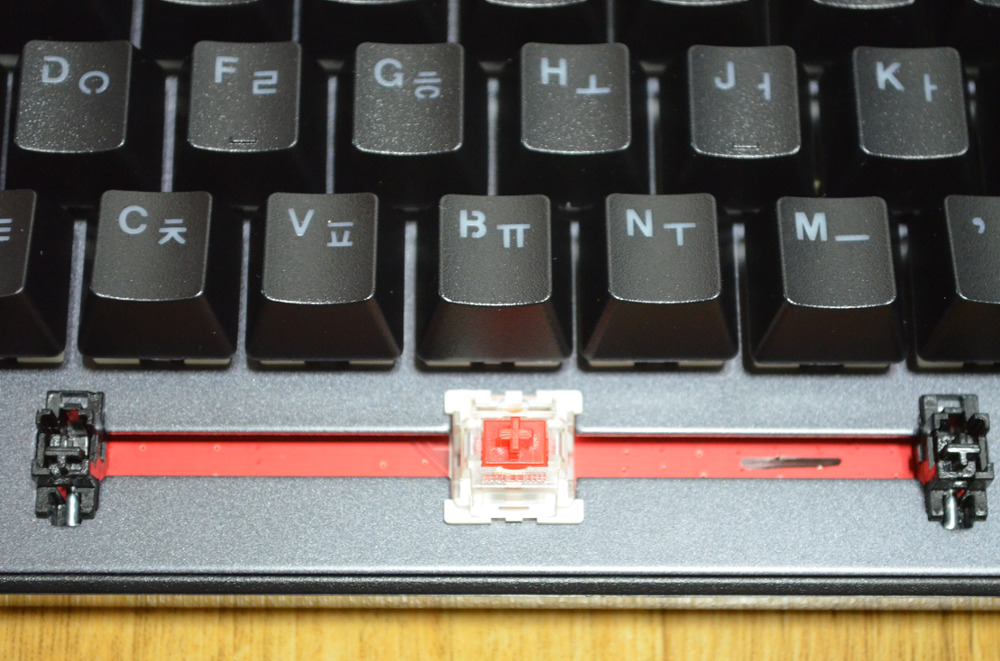 스페이스바나 시프트, 백스페이스바같이 길쭉한 키들은 체리식 스테빌라이저가 포함되어 있습니다.