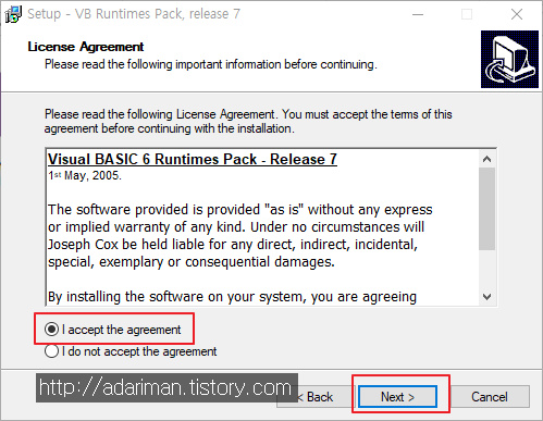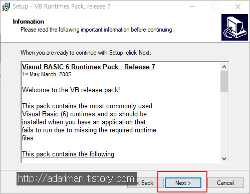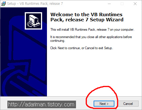 설치는 어렵지 않습니다. 위 파일을 다운로드받아서 실행시킨다음 다음, 다음 누르면 설치가 끝납니다.
