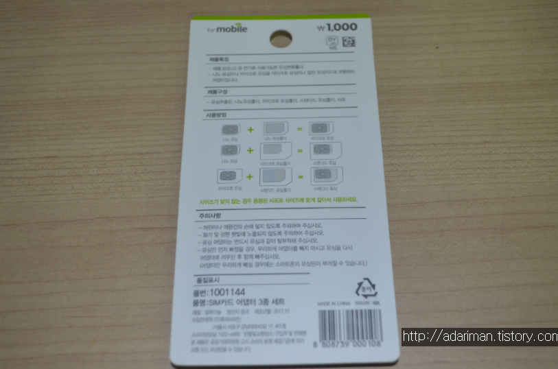 가격은 천원이고 어댑터 크기가 그다지 크지 않기 때문에 잃어버리지 않게 잘 보관해야 됩니다.