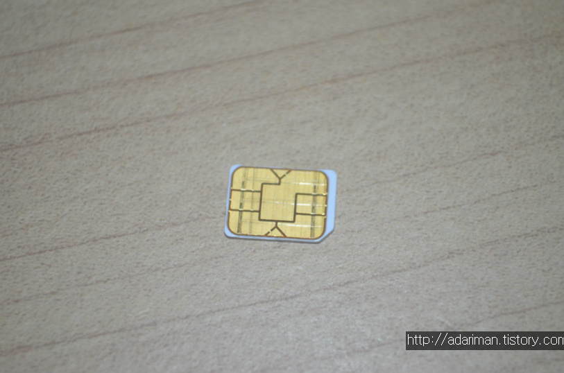 나노 유심카드 하나를 준비했습니다. 나노 유심은 크기가 가장 작은 유심카드입니다. 나노 유심카드는 어댑터를 사용하면 모든 크기로 다 쓸수있습니다.