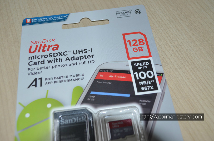 태블릿에 인터넷 강의를 저장할 대용량 마이크로 SD 카드가 하나 필요해서 샌디스크 울트라 Micro SDXC A1 128GB 제품을 하나 구입했습니다.