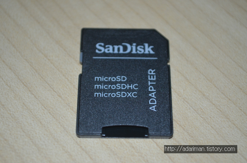 같이 동봉되어 있는 어댑터입니다. 다른 마이크로 SD 카드와도 같이 사용할 수 있습니다.